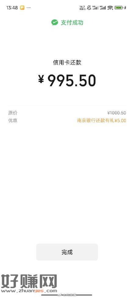 微信还信用卡,南京银行有1000-5