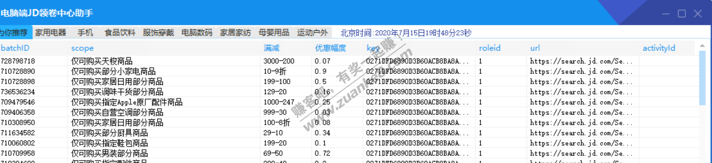 软件使用二维码登陆,登陆后看好卷,双击对应的Key会自动复制,点领卷即可领取,不能领取的也会返回原因,有的说返回太火爆,这9成9你黑号吧。
