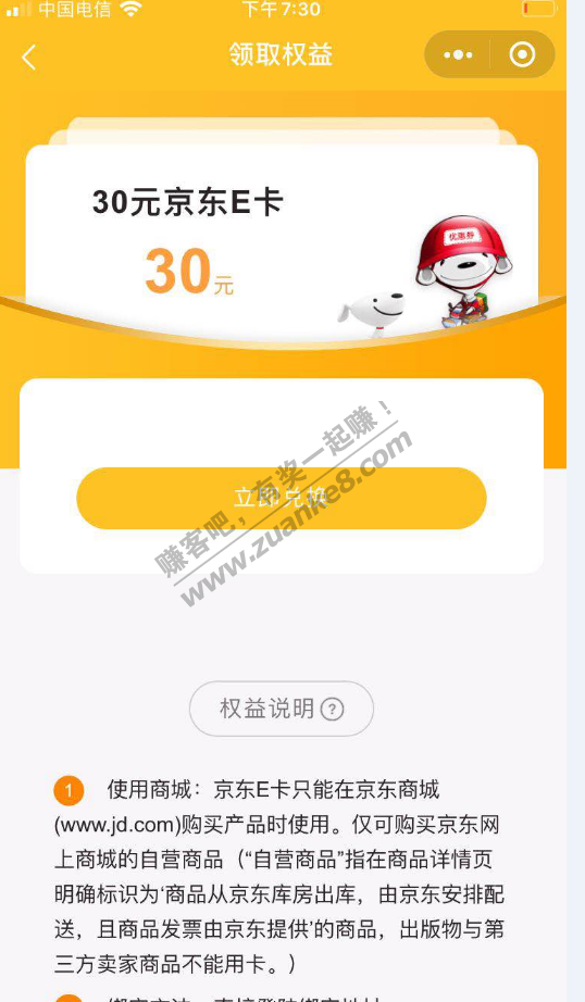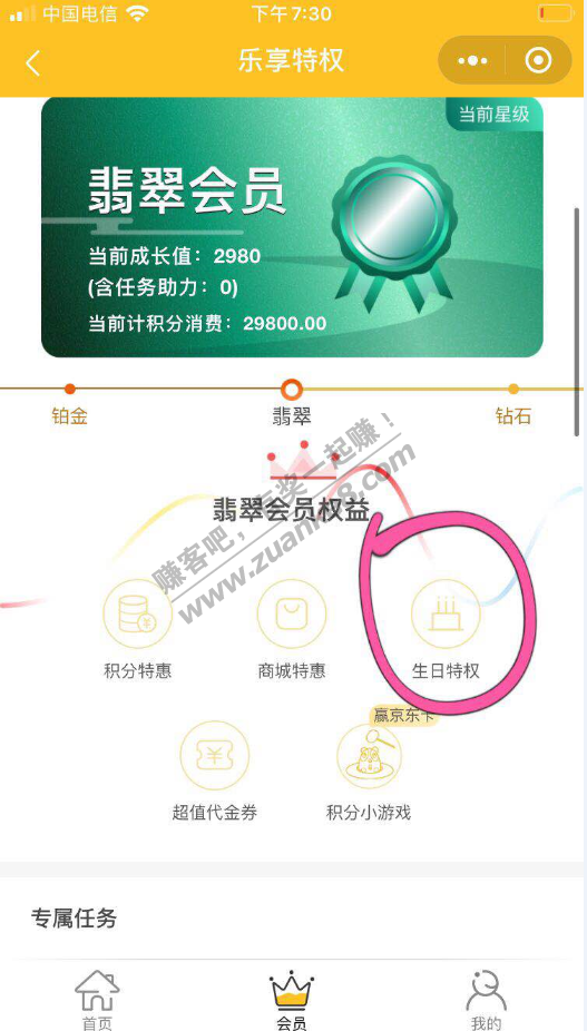 5:如果你是7月生日,回到会员页面上部,生日特权,30京东卡领一下