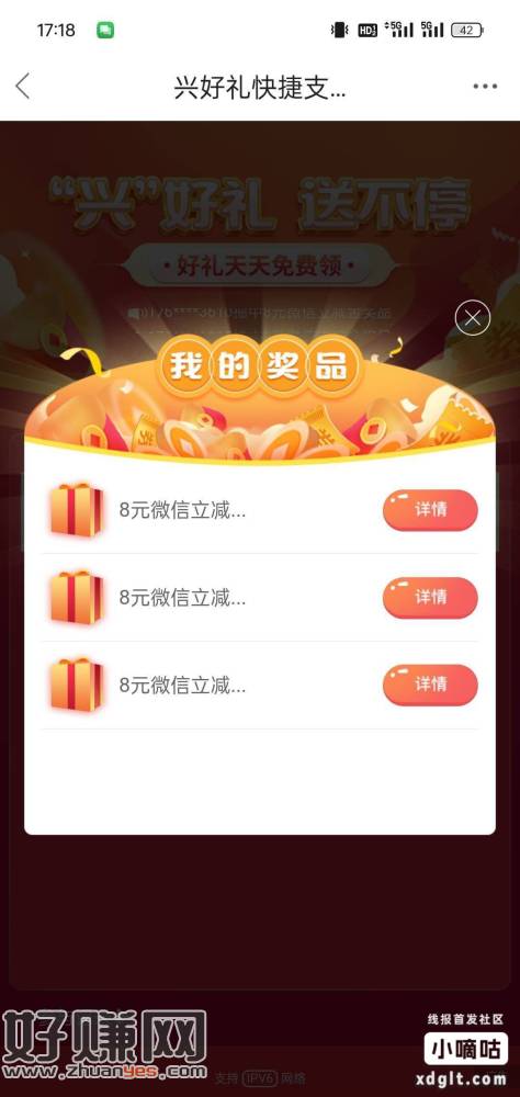 北京兴业银行 3个8立减金,注意先领取一个看看有兑换码不,没