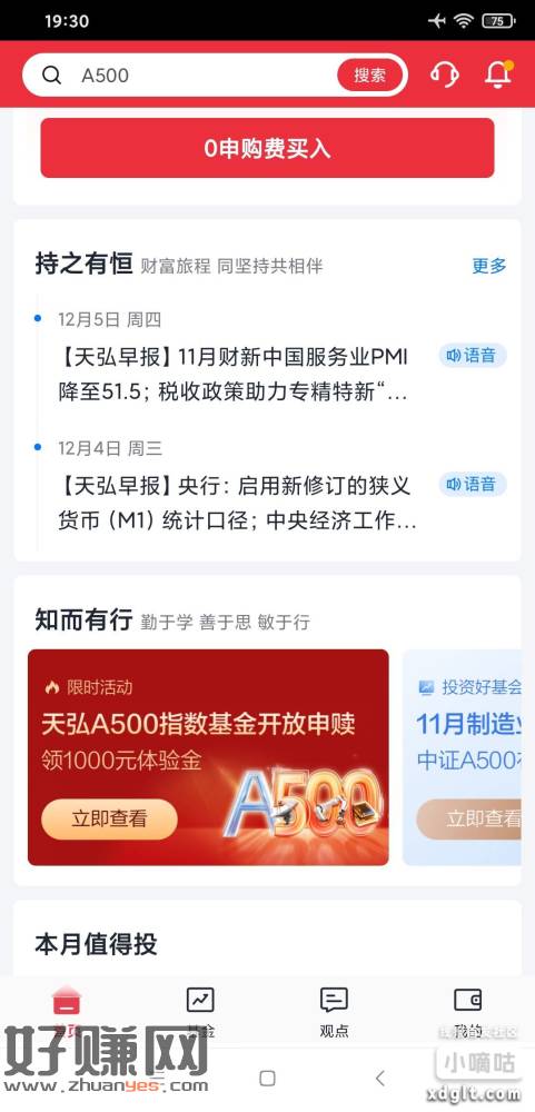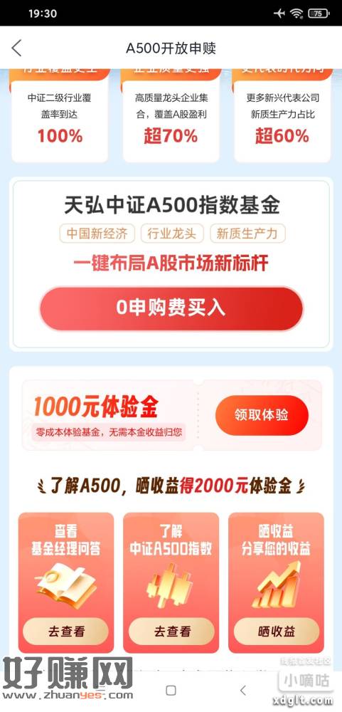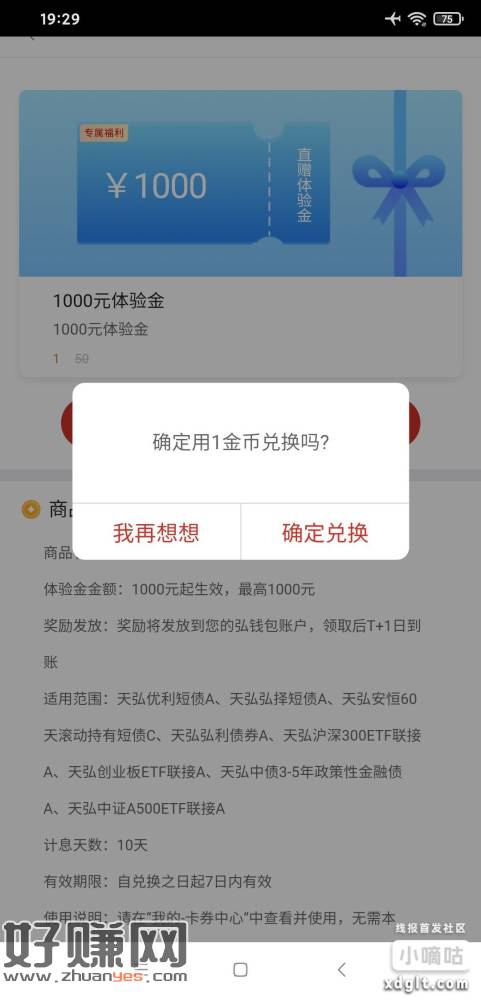 天弘基金app,首页轮图,一金币换10天1000体验金