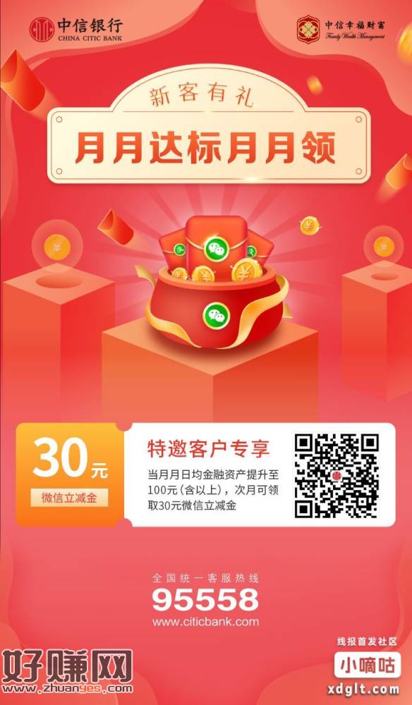 中信银行特邀,转进去3000下月必得30立减金。可以去试试有
