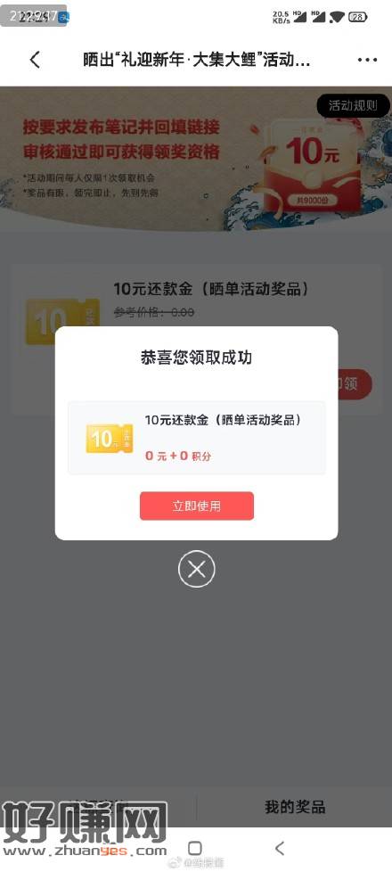 闲鱼 搜索 年度财报 领红包 大小号互 t