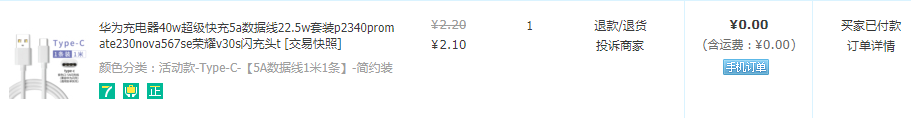 Type-C 5A数据线1米 1.1有红包0元