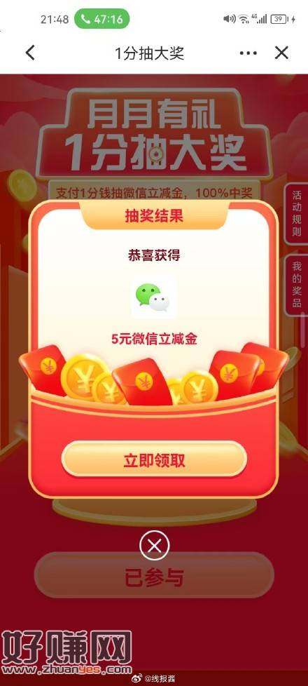 每天红包雨和浏览任务分享任务刷新 换立减金需要下载app
