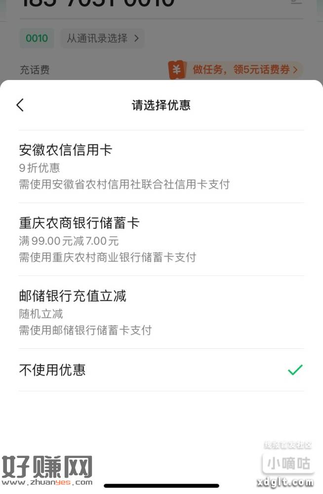 安徽农信信用卡200话费9折,昨天储蓄卡改信用卡的也能参加,微信手机充值