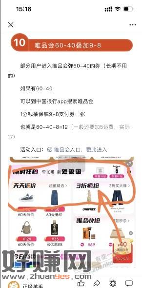 可以到中国很行app搜索唯品会1分钱抽保底9-8支付券一张
