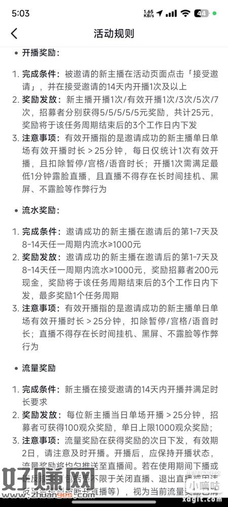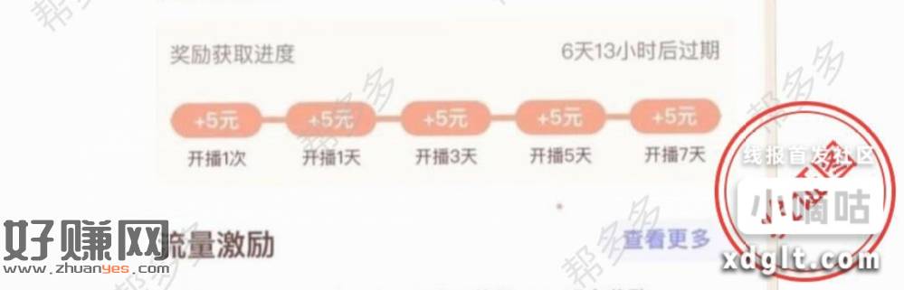 抖音直播任务,一天直播30分钟5块。可玩七天
