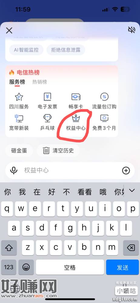 电信app,限四川地区,权益中心里面,领五元无门槛优惠卷,可