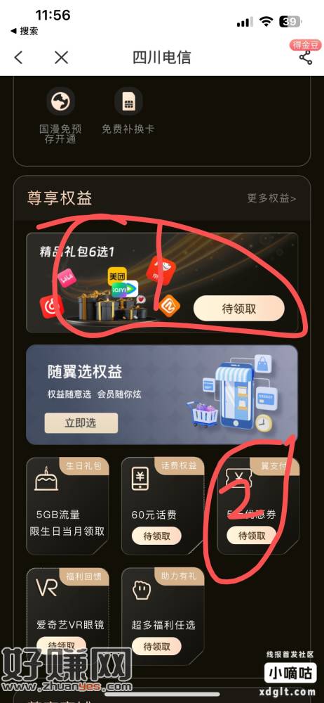 电信app,限四川地区,权益中心里面,领五元无门槛优惠卷,可充话费电费买东西,还有一年一分钱视频会员,或京东e卡10,前提是不能换套餐