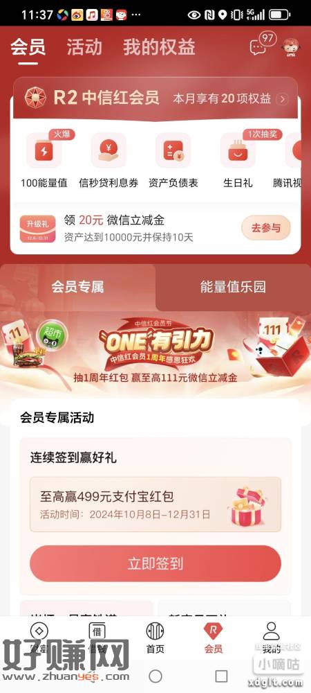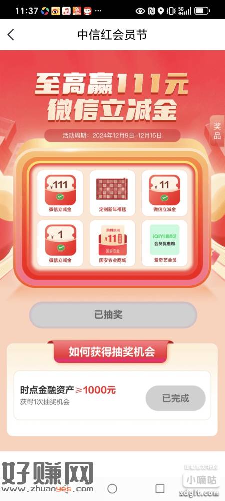 毛荒,中信会员中心横幅去抽,需要资产超过一千