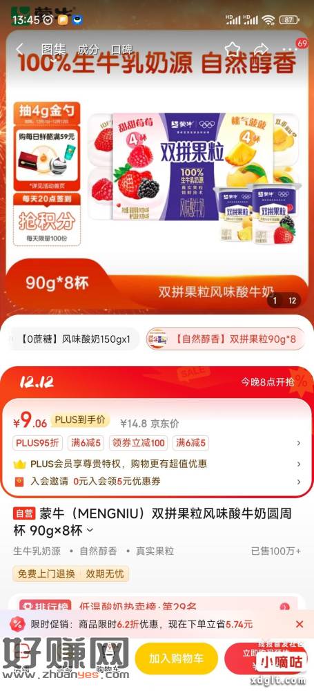 中行京东减9的卷可买蒙牛酸奶