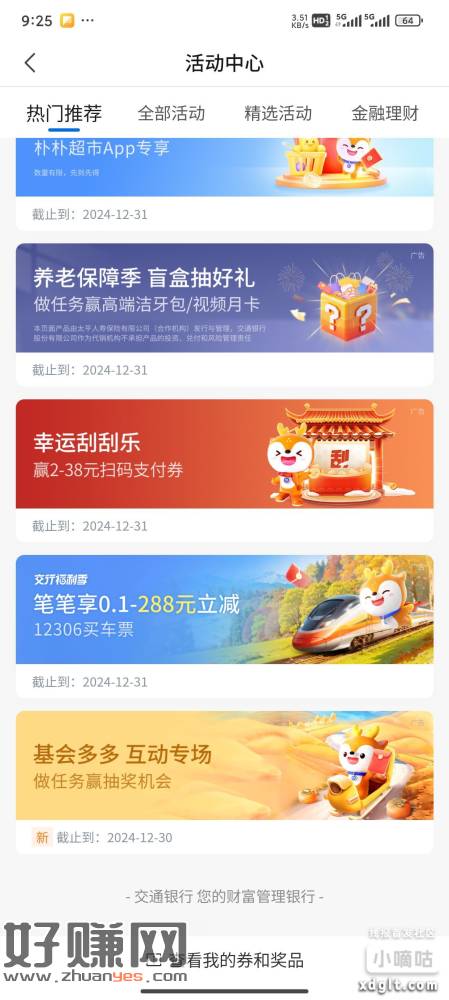 交行活动中心,热门推荐拉到最下面,有个基会多多,互动专场,完成2个简单任务抽2次,刚中8+1ljj