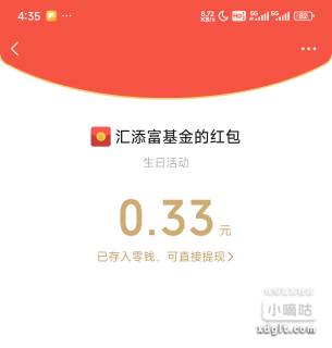 下滑找到生日活动,点坤领取,微信汇添富坤金公众