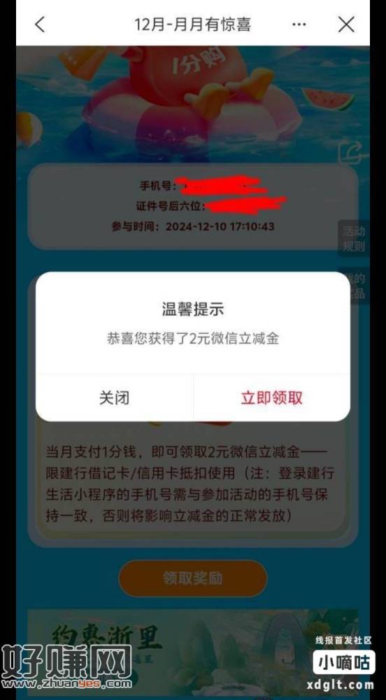 建行生活app浙江月月有惊喜1分领好礼活动