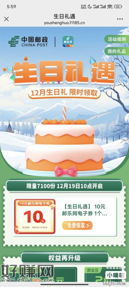 预告: 12月生日的,邮生活19号10点准时领10支付券,0