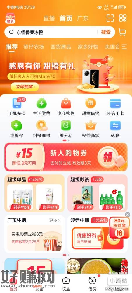 翼支付,横幅,下面大转盘任务,做浏览任务权益金,扫V可T