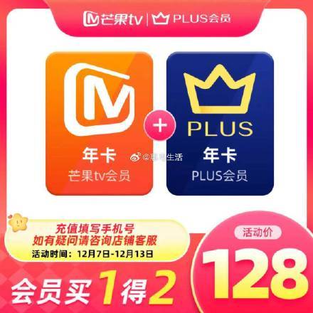 5块钱/月的会员卡,128元双年卡芒果tv会员+亰东plus年卡