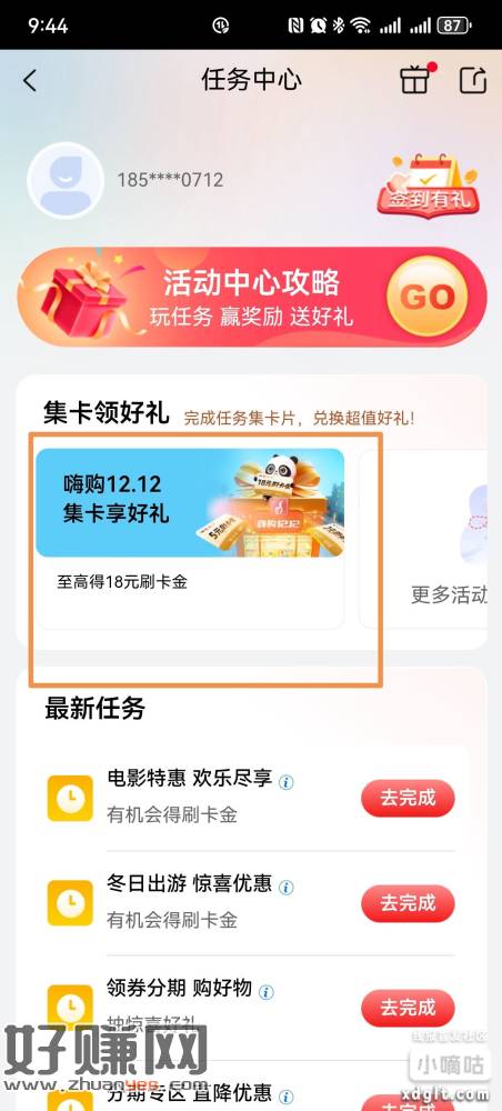 工银e生活,我的,e起做任务,嗨购12.12完成567任务抽刷卡金,我抽到了5