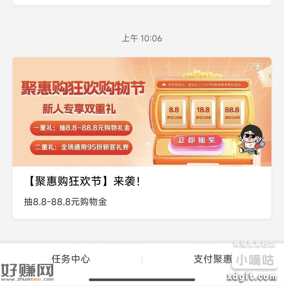 工行右上角消息中心,优惠活动里面找到如图所示购物节(自测!自测!)