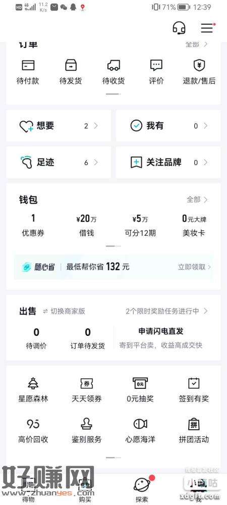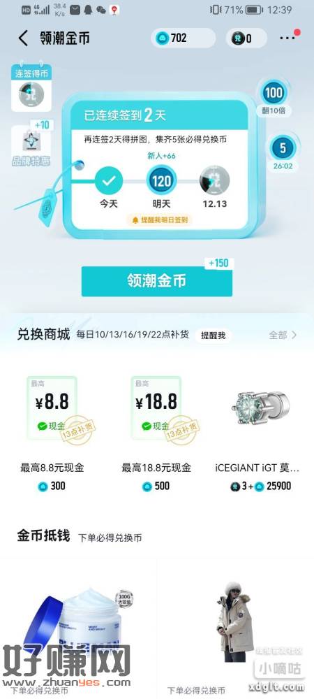 得物我的页面点签到领奖,等一点补货然后兑换