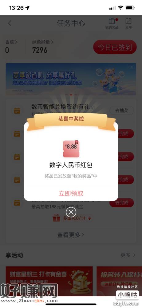 不知道是不是区域的活动,工行在成都的可以去看看,签约一下,得8.88通用数币,t完记得回去把签约关了。数币被拉黑的就别去了。其他的自测