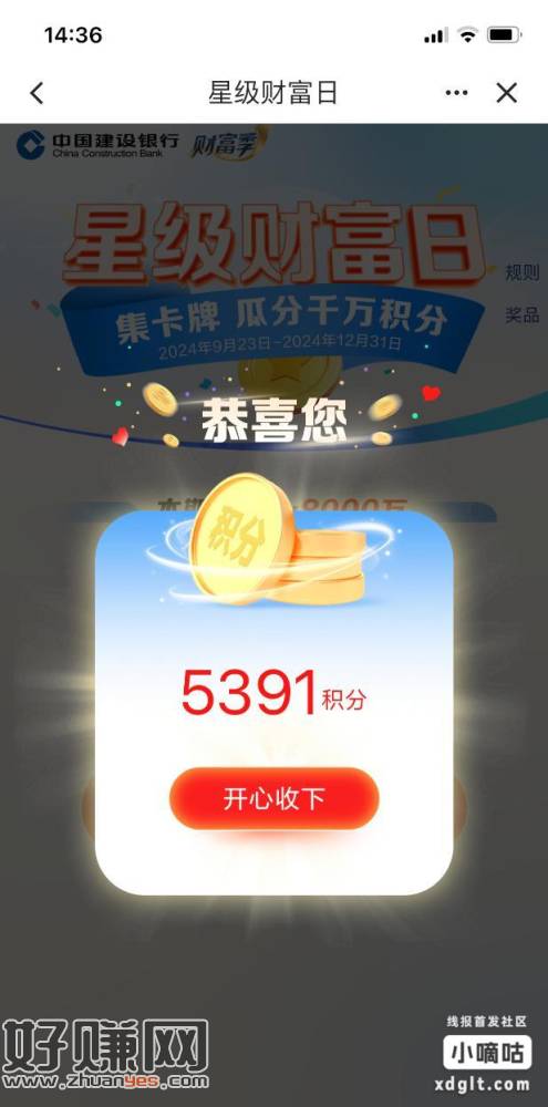 建.桁αρρ,我的,最上方名字旁边★点进去,中间轮播图“星级财富日”,瓜分积分,可得5-6k多不等。