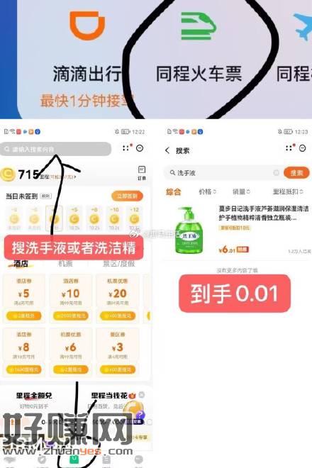 华为负一屏进去同程商城,搜洗手液或者洗洁精