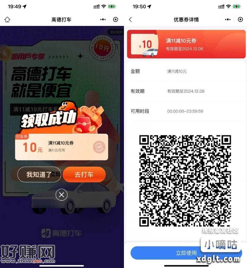 微信扫码打开活动,直接领11减10亓打车券,刚好要打车还是很不错的!