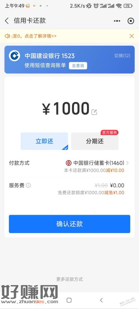 中国银行支付宝还款1000-10