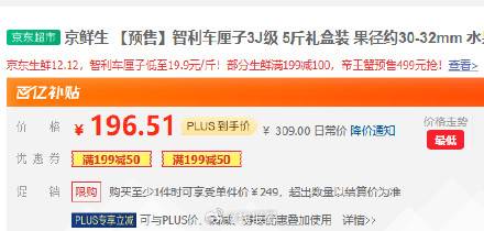 196,京鲜生 【预售】智利车厘子3J级 5斤礼盒装