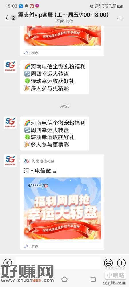 河南电信每周四大转盘,概率5g流量,有兴趣的可以看看!