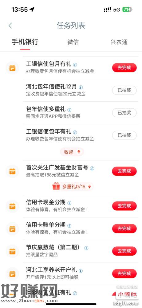 河北工行20立减金。工行App任务中心,信使包年30元,三个