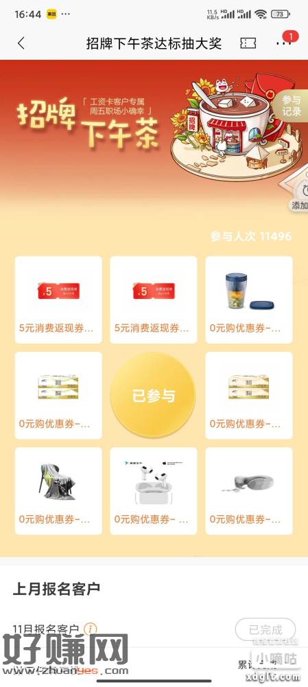 招商银行搜索招牌下午茶,抽,必中5元返现券,微信充6元可到账