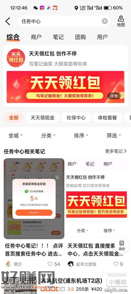 大众搜任务中心-天天领进去,部分用户可以参加,当天发布笔记可