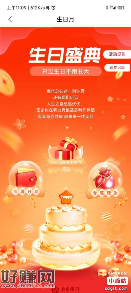 南京银行生日礼终于又出来了,上次没领到这次领到了