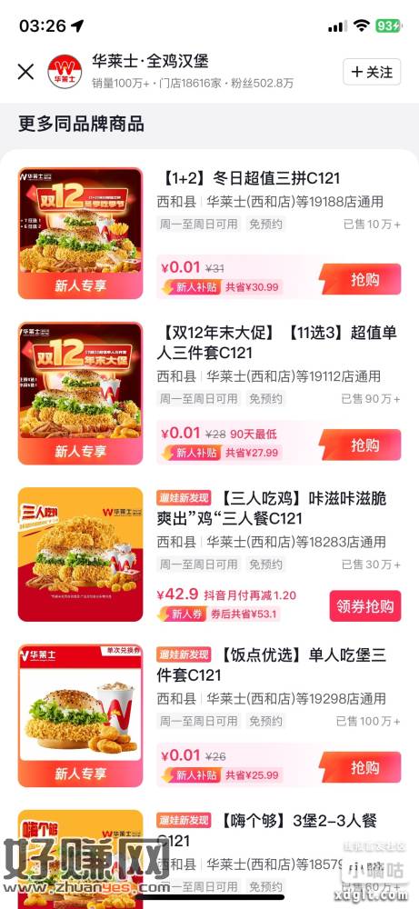 刚才苹果id登抖音那个 团购专区白票华莱士喷射套餐