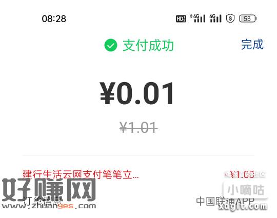 联通/移动App缴费改1.01元,云闪付付款跳转建行生活满1.01-1共4次