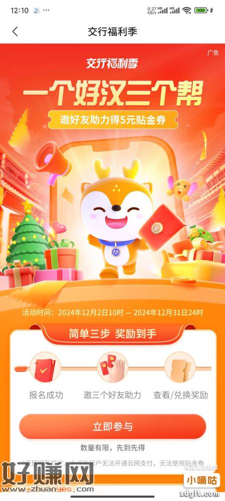 交行活动中心拉到最后,进去小程序拉三个微信好友助力一下,秒到