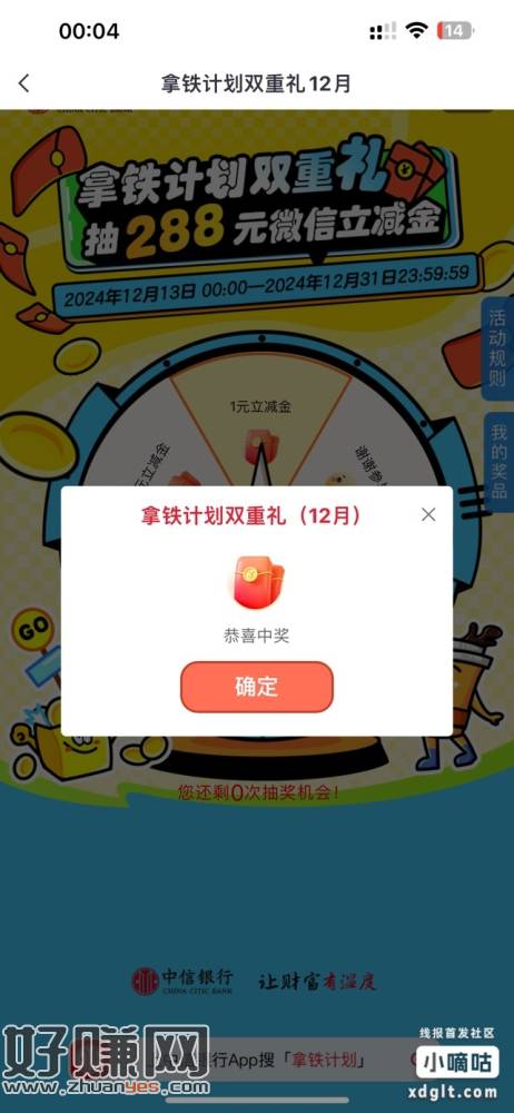中信搜拿铁计划 投资一元抽 抽完终止计划 1r