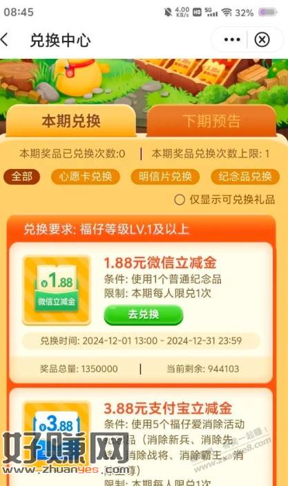 中国银行 福仔 兑换中心 挑一个金额大点立减金 兑换 一个月一次