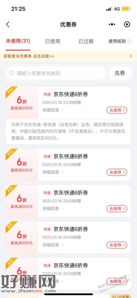 2025年3月到期 上限抵500 寄大件的上!
