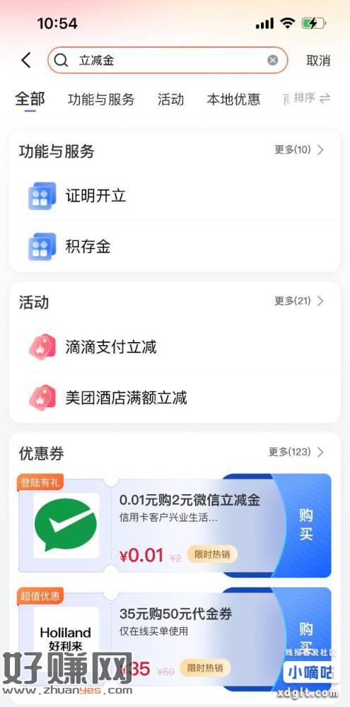 首页左上角地区改成都,然后最上面直接搜立减金,0.01买2
