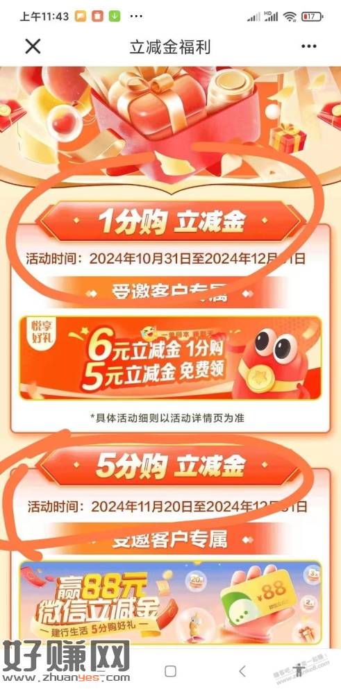 App首页 顶部,一分购6立减金,5分购抽立减金。