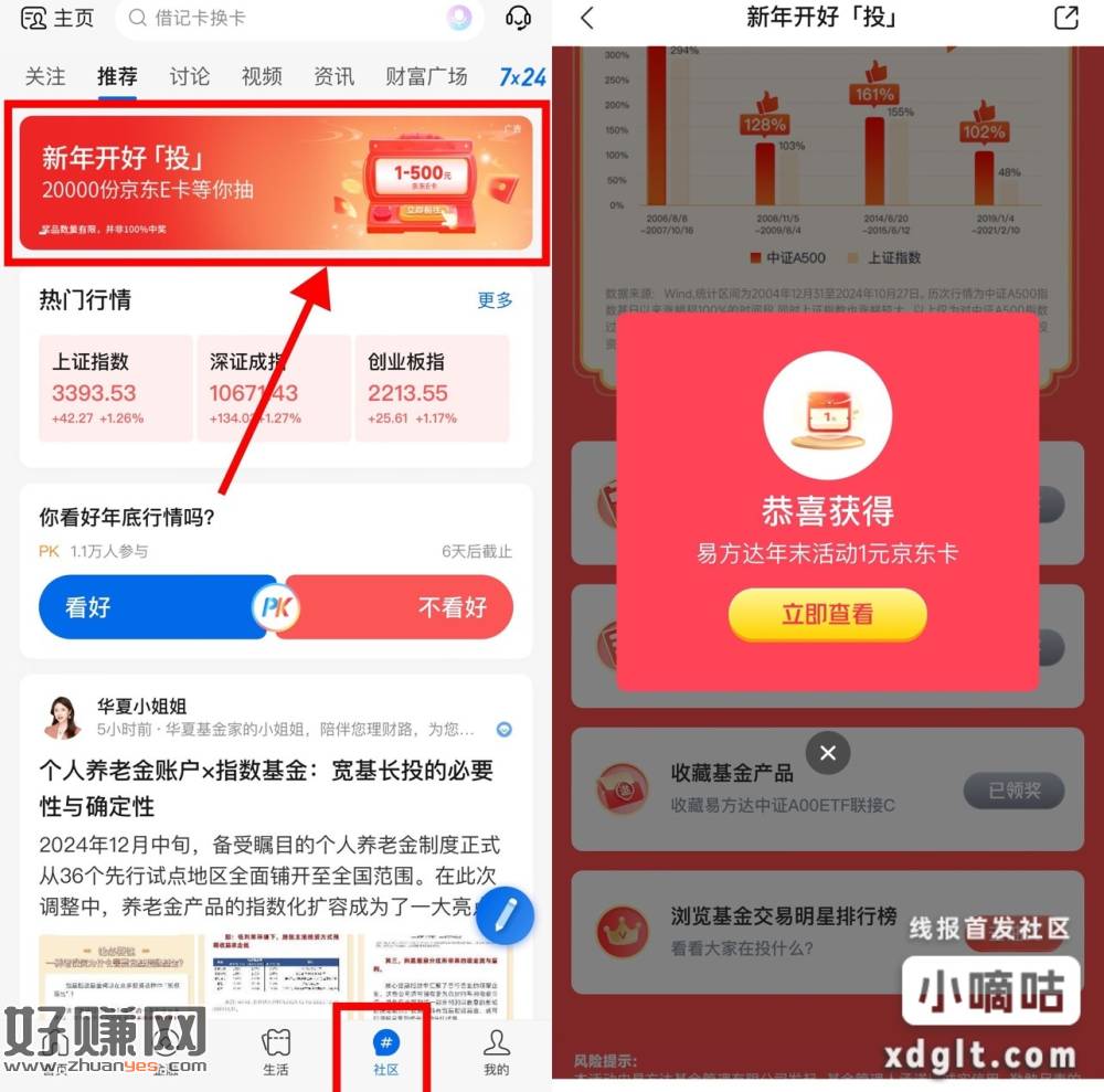 交行APP底部“社区”->点击顶部横幅进入->下拉浏览得4次机会抽1亓京东E卡