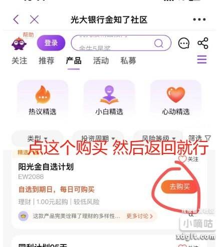 光大,第1个任务点击去体验,点击去购买,然后返回就行,不需要购买。