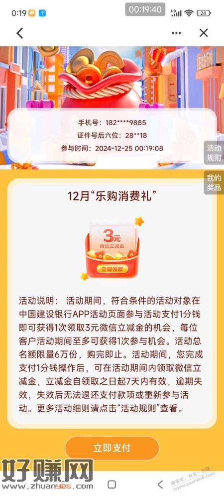建行北京 1分购3元微信立减金