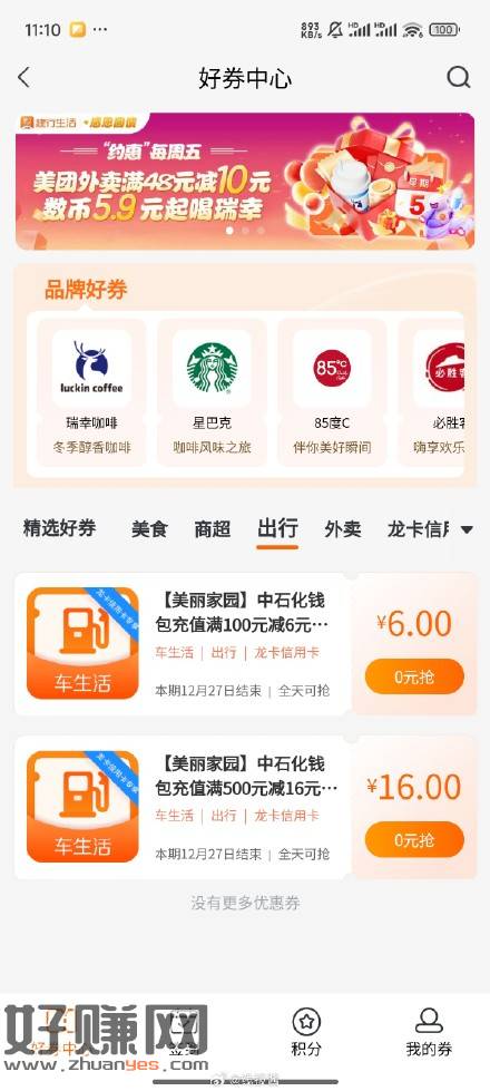 建行生活,好券中心,出行,有信用卡加油券,2选1