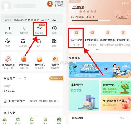 邮储每月权益星级领取1~6元