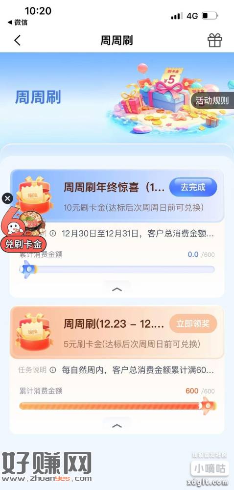 兴业周周刷,新出个任务,30-31日,消费600,可以领10元,正好可以顺便把上周的5元领了。
